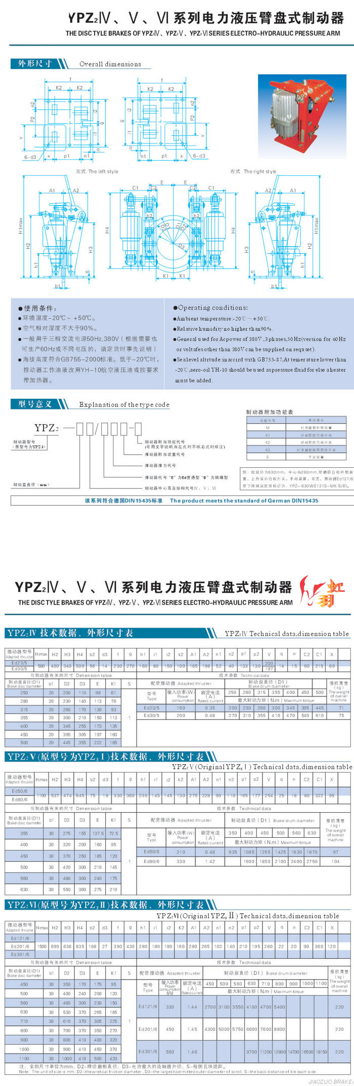 YPZ2Ⅳ、Ⅴ、Ⅵ系列系列電力液壓臂盤式制動器