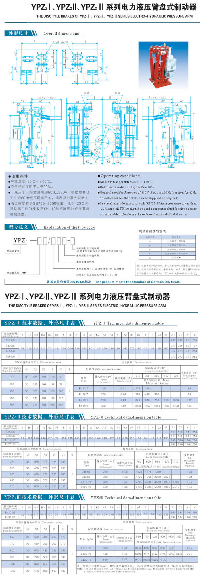 YPZ2Ⅰ、Ⅱ、Ⅲ系列電力液壓臂盤式制動器